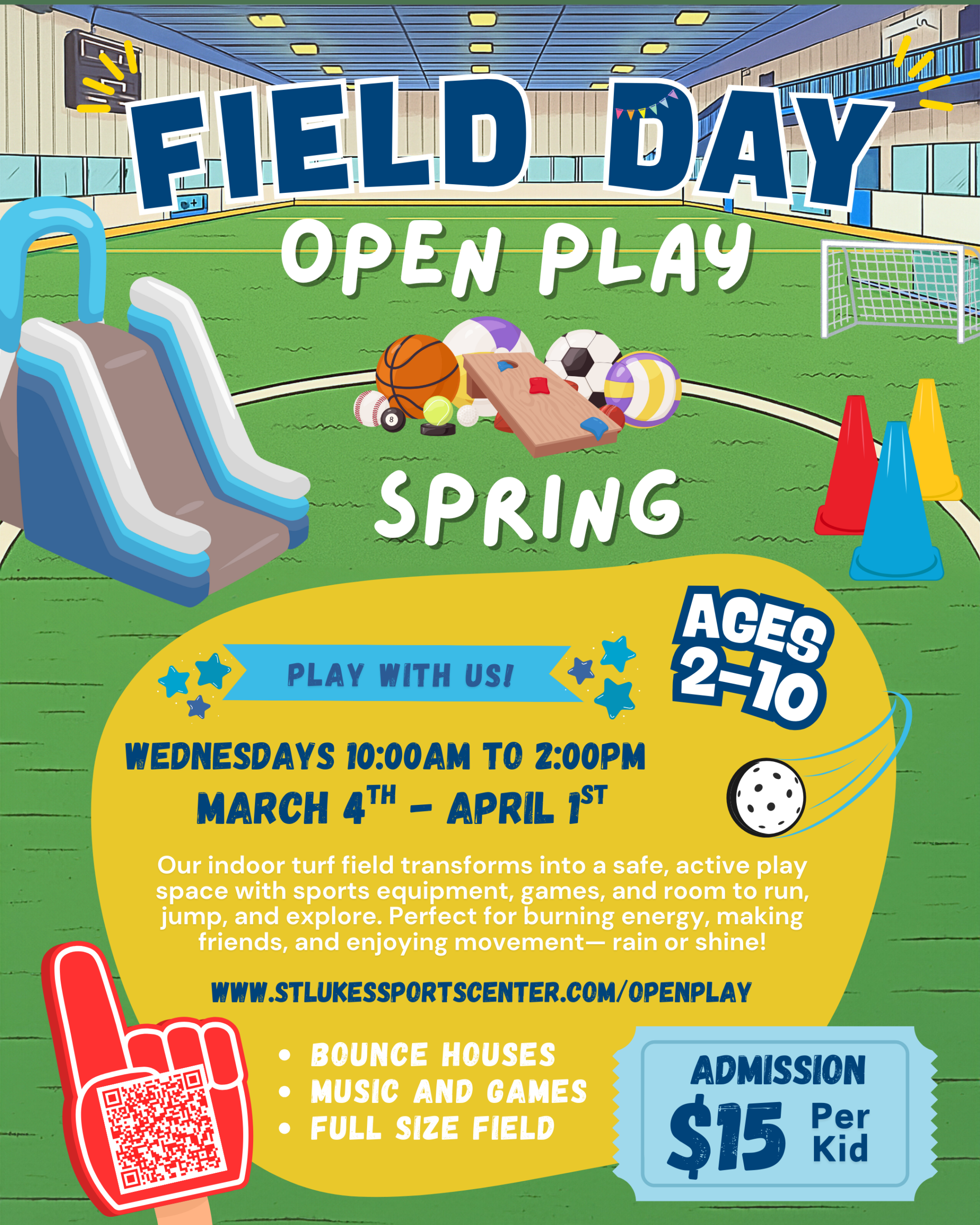 Looking for the perfect way to let your kids burn off energy in a safe, fun, and active environment? Open Play at St. Luke’s Sports Center gives children the chance to run, jump, and explore on a full-size turf field with plenty of games and equipment. Parents love it because kids stay engaged, make new friends, and enjoy healthy movement — all while you get peace of mind knowing they’re in a secure, family-friendly space. Whether your child is full of energy or just needs some time away from screens, Open Play is the ideal way to combine exercise, social interaction, and fun under one roof.