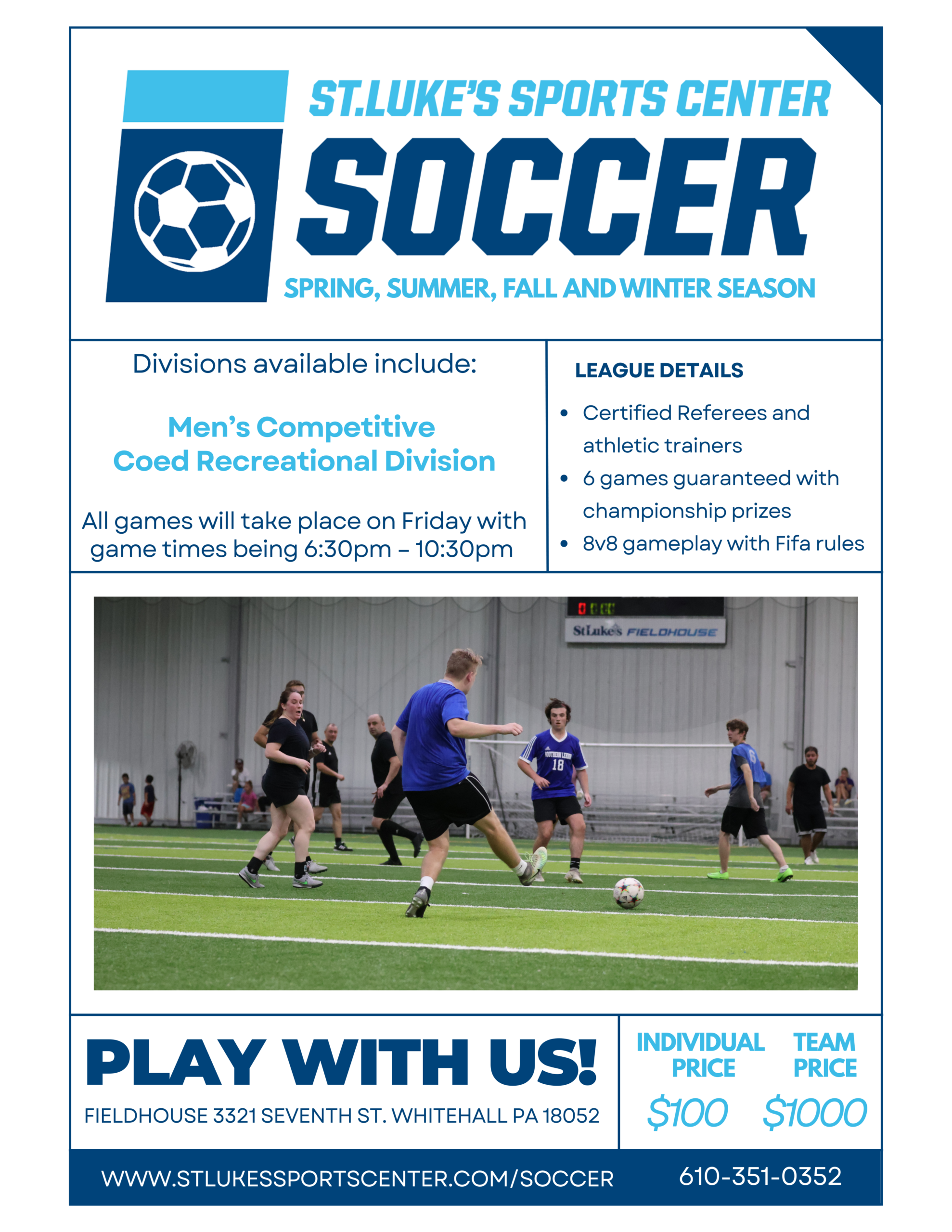 CONTACT: Info@StLukesSportsCenter.com.com or 610-351-0352